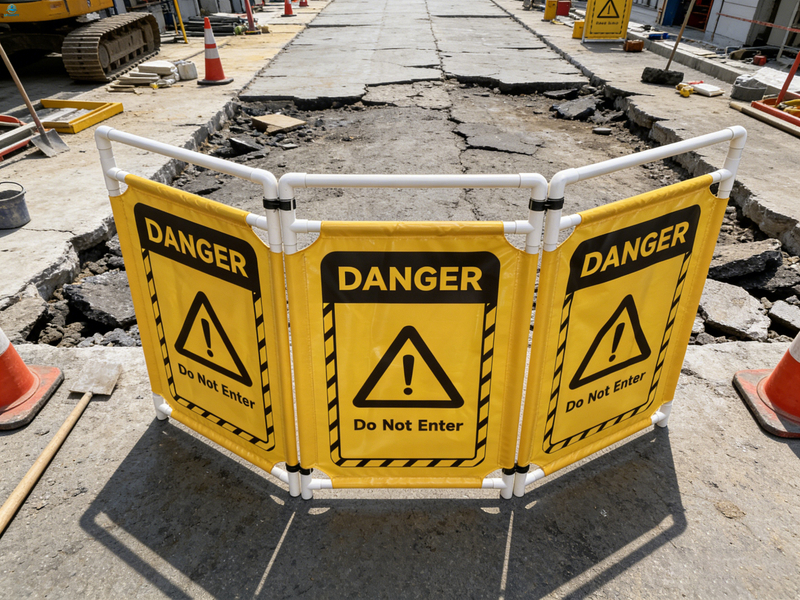 Ideal for road construction, building sites, industrial facilities, events, emergency isolation, and property management – a versatile PVC tarpaulin safety barrier to keep your site safe, organized, and efficient.